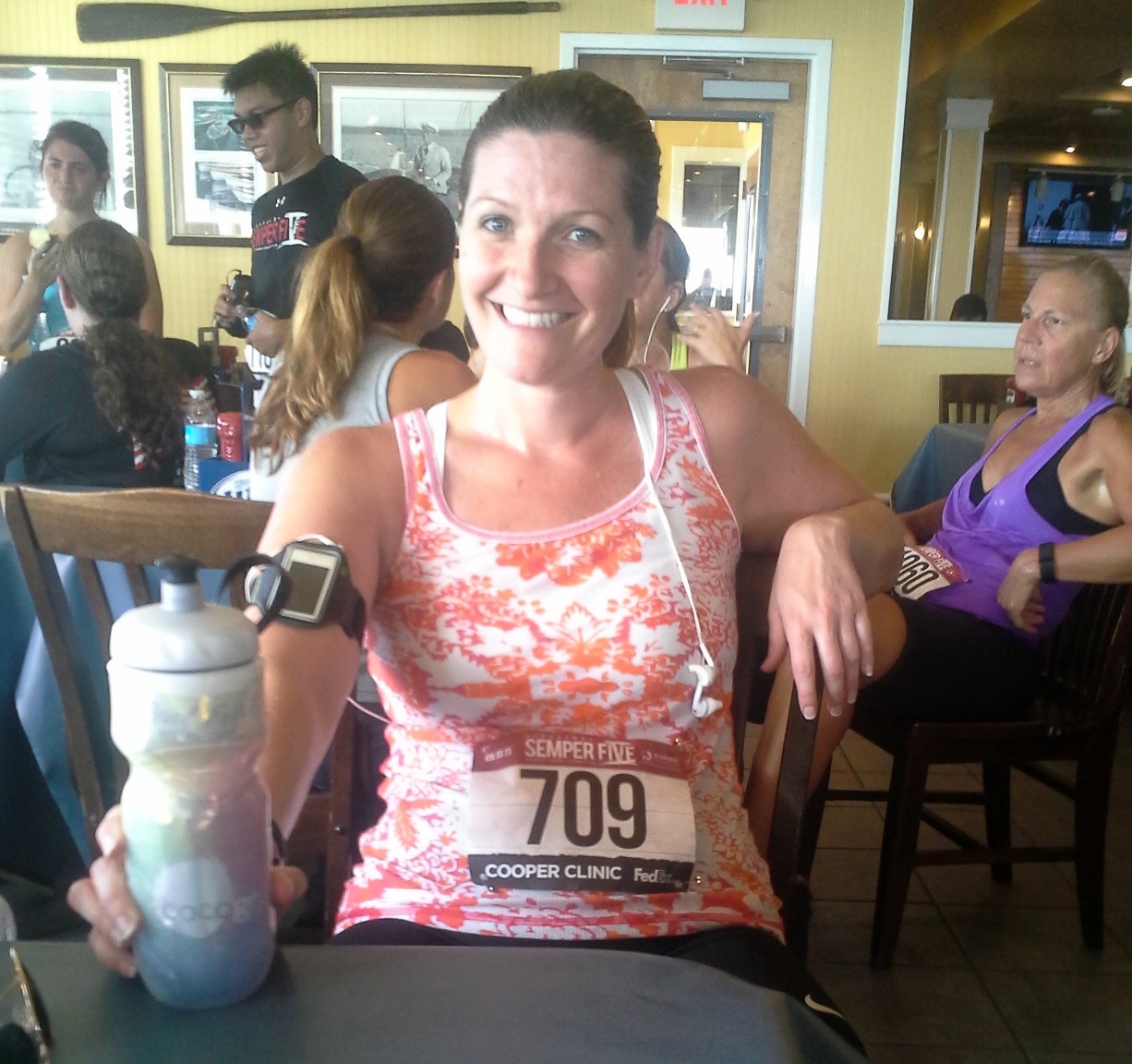 I walked 2-3 times to sip my water through mile 2.5, and saw a good number of people still making their way to the turnaround. But once I hit 2.5, I looked at my watch and realized that I had slowed my pace to around 10:50 with my walk breaks – that was still one of my best 5k times ever!